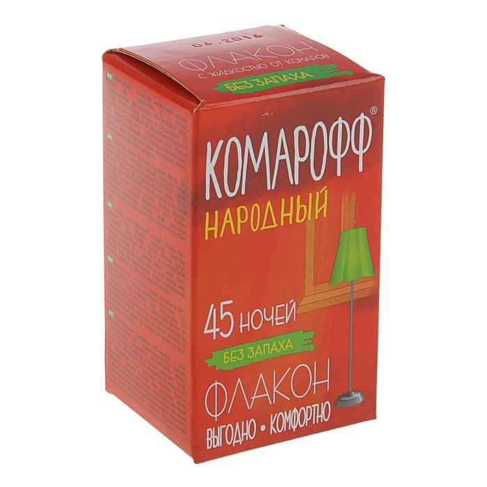 Жидкость "Комарофф" незаменима для уничтожения комаров и других летающих насекомых (москитов, мошек) в помещении. Один флакон жидкости обеспечивает надежную защиту от комаров на протяжении 70 ночей. Максимальный эффект достигается при использовании жидкости в комплекте с фумигатором "Комарофф".