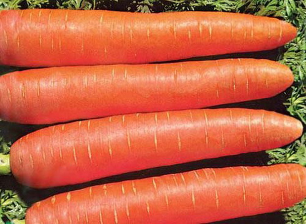 Высокоурожайный среднеспелый сорт. Корнеплоды цилиндрические, с тупым кончиком, длиной 18-20 см, тупоконечные, с гладкой поверхностью. Мякоть ярко-оранжевая, сочная, нежная и очень сладкая, сердцевина почти незаметна. Один из лучших сортов для детского и диетического питания. Лежкость - отличная!